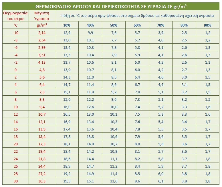 Χρήσιμο εργαλείο μέτρησης του σημείου δρόσου μπορείτε να βρείτε πατώντας εδώ