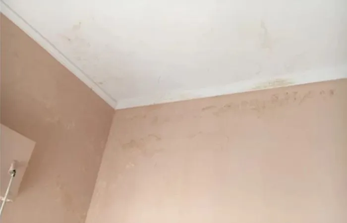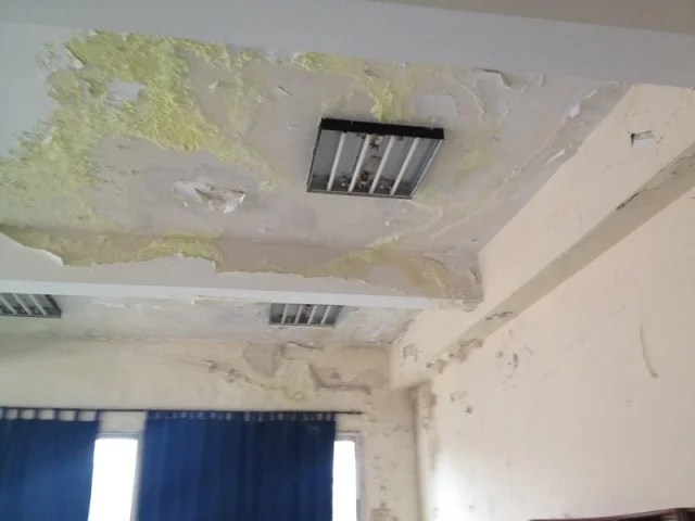- Appearance of brown colour (rust) due to corrosion of the reinforcement (iron) of the ceiling slab.